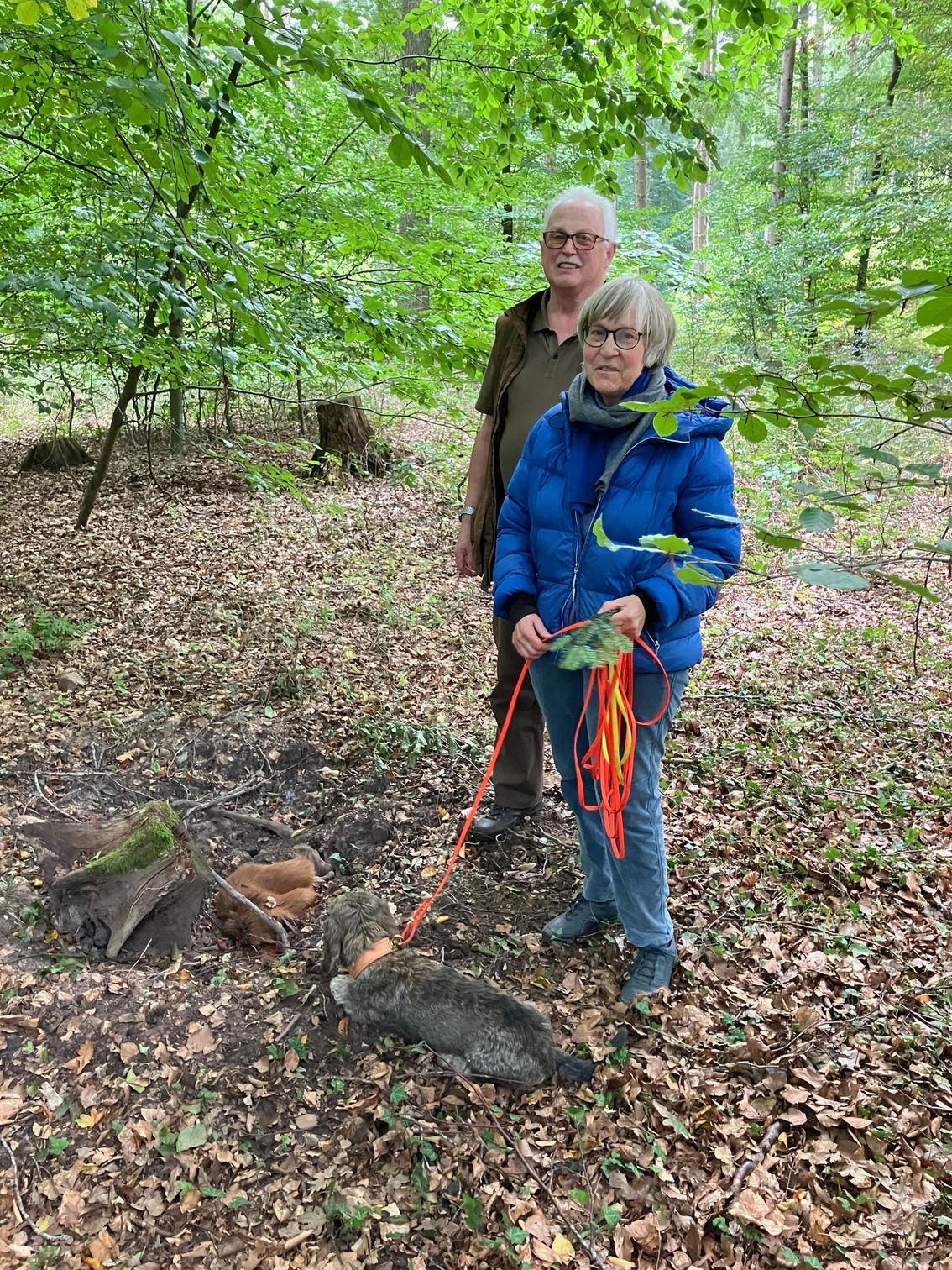 Pünktlich um 11 Uhr trafen alle Wanderfreudigen Menschen und Hunde in Hamfelde auf dem Parkplatz des Gasthofes Waldeslust ein. Per Hansen und seine Frau Ute führten uns von dort direkt in den Hahnheider Wald. Da es in der Nacht geregnet hatte, war die Luft sehr feucht und der Wald entsprechend. Der Weg führte über sehr schmale Wege, manchmal auch bergauf und dann wieder bergab zum Hauptweg. Die geplante Strecke hinauf zum Turm haben wir zeitlich leider nicht geschafft. Es ging doch langsamer voran als geplant. Pünktlich waren wir dann auch zum Spargelessen im Gasthof. Wie immer war der Spargel sehr lecker und reichlich im Angebot. Am Ende verabschiedeten wir uns alle und freuten uns über so einen schönen Sonntag mit unseren Teckeln, die natürlich auch mit in den Gasthof durften.